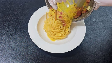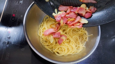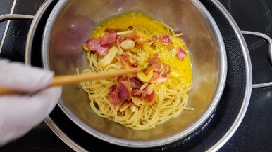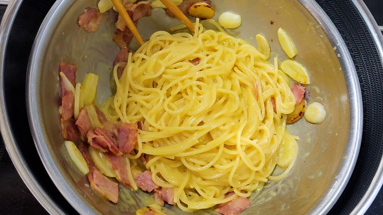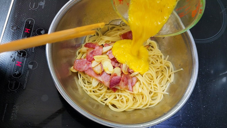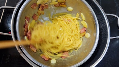 ※ 면수의 온기로 달걀물을 중탕해 크리미한 소스가 됩니다!