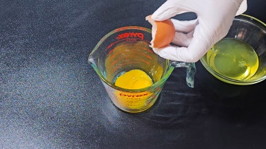 ※ 총 노른자 4개, 흰자 1개 분량입니다! 흰자를 소량 섞어주면 촉촉한 소스가 됩니다!