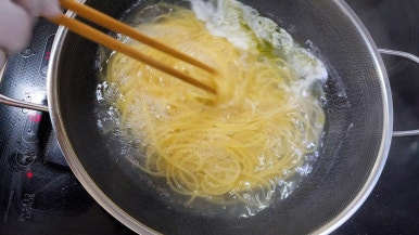 ※ 면수에 올리브유를 넣으면 면끼리 달라붙지 않습니다!