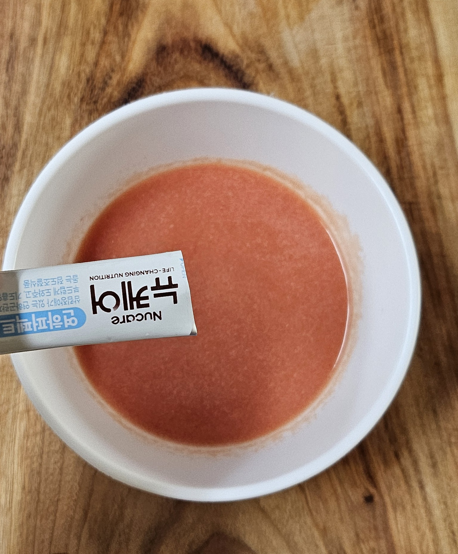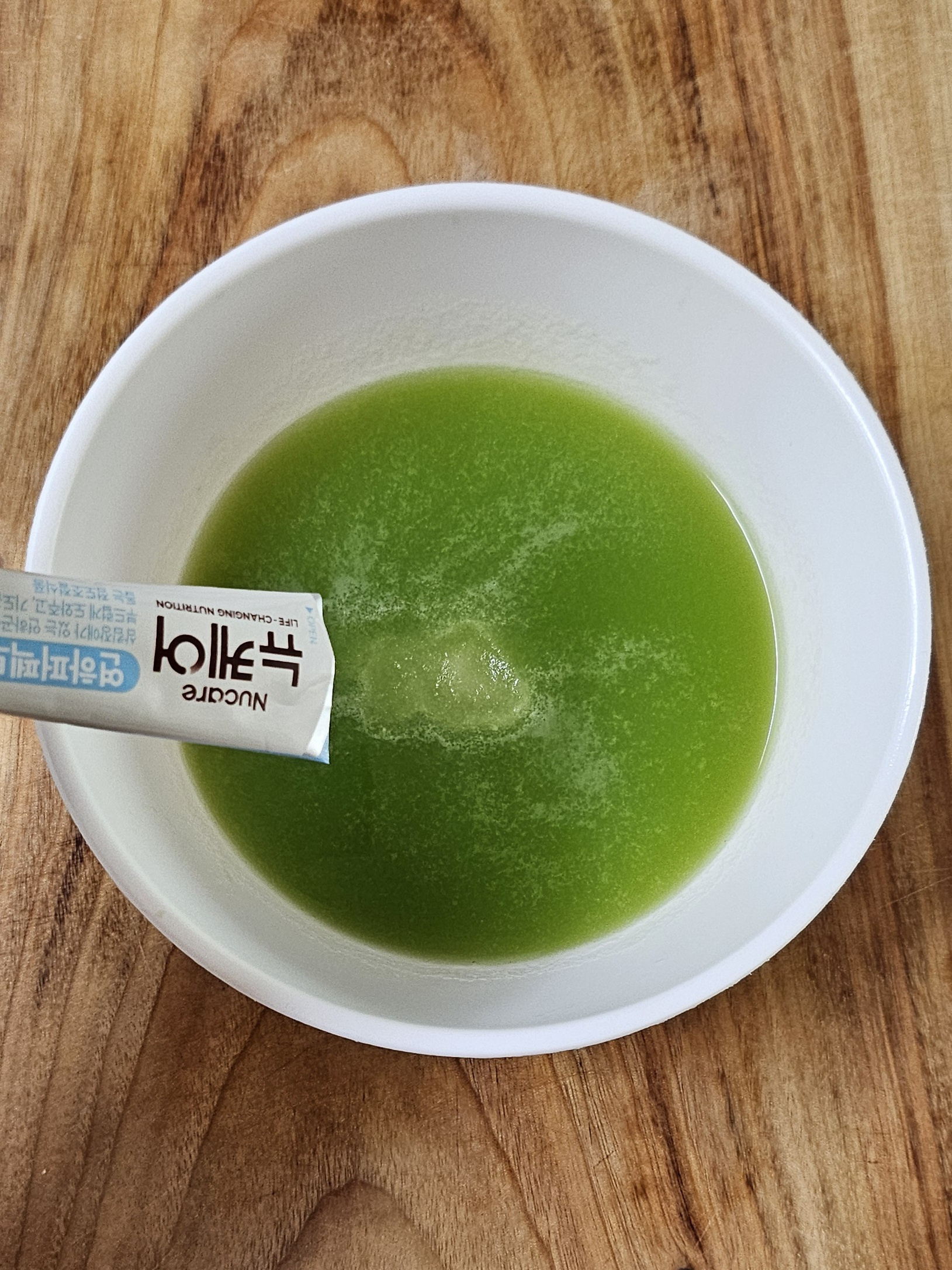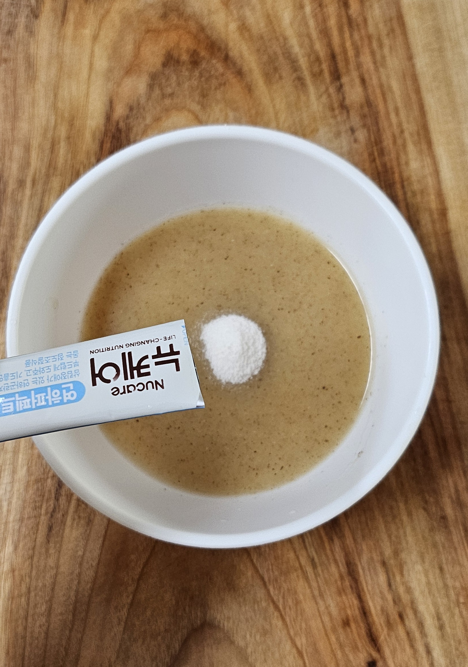*키위즙에도 연하퍼펙트푸디 1g를 넣고 저어 풀어줍니다