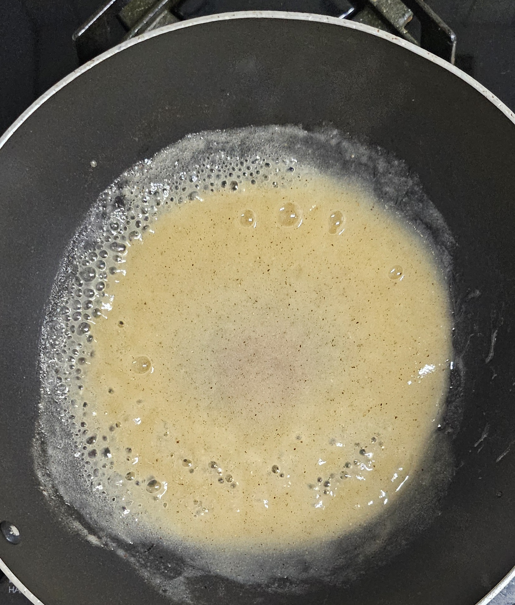 *냄비에 키위즙을 넣고 고루 저으면서 끓이다가