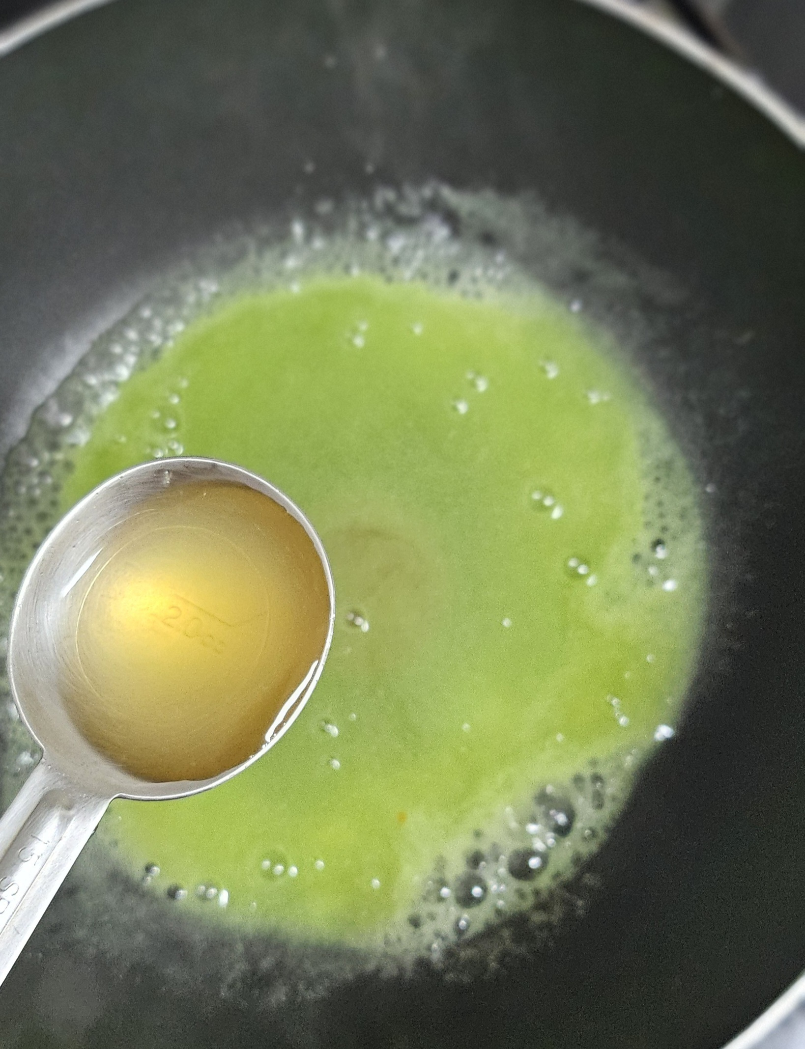*냄비에 오이즙을 넣고 저으면서 끓이다가