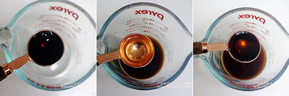 볼에 진간장 2큰술, 올리고 당 1큰술, 참치 액 1큰술을 넣고