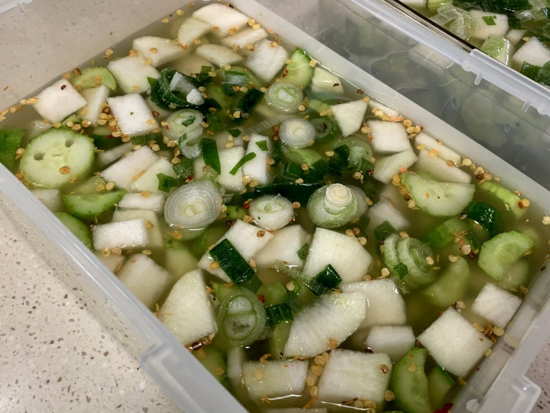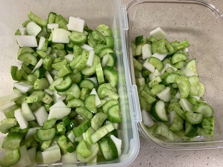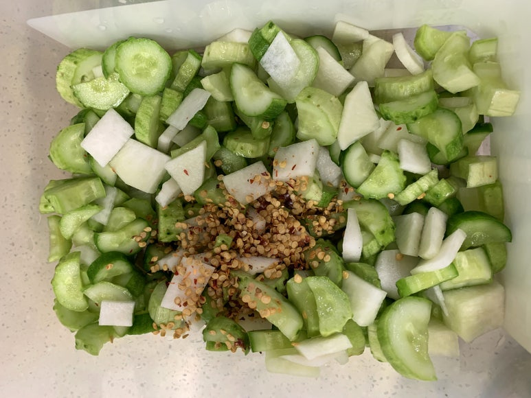 오이나 무가 말랑말랑해지면 다 절여진 것입니다.