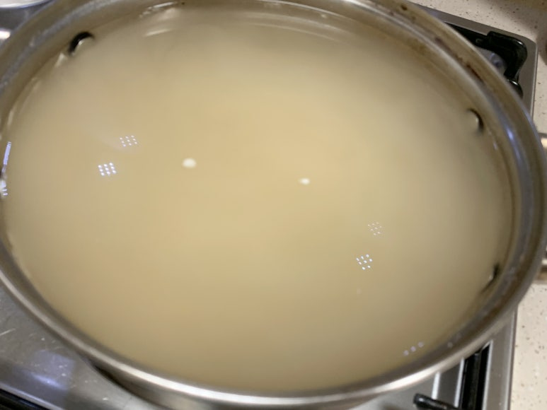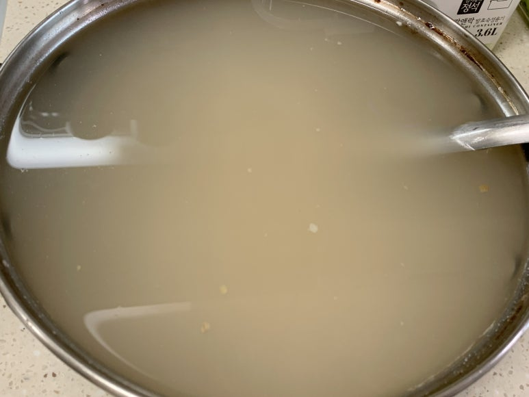 진하게 우러나온 육수를 잠시 식혀 둡니다.