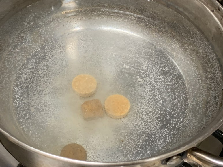육수에 찹쌀가루를 넣고 만들어서 식혀 두었는데,