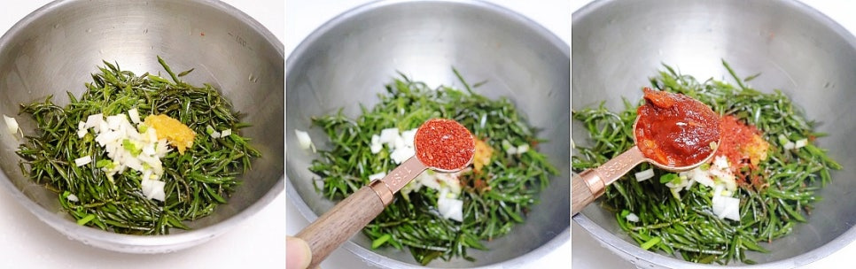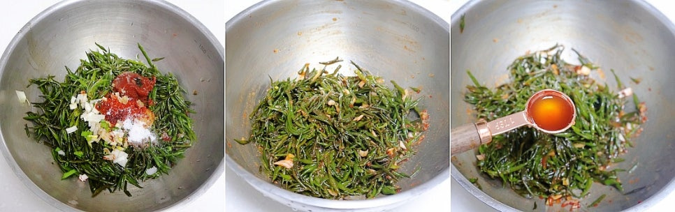 썰은톳은 물기를 한 번 더 꼭 짠 다음 볼에 담고
