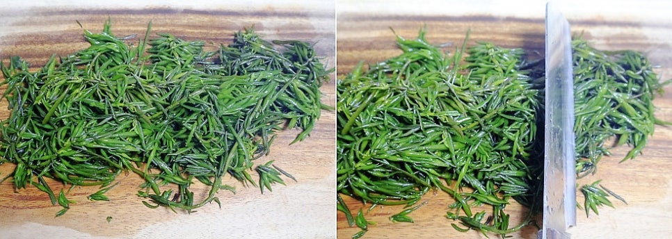 물기 뺀 톳은 먹기 좋은 크기로 썰어줍니다