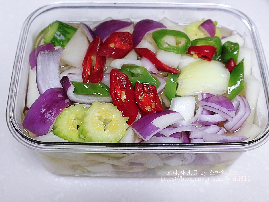 새콤달콤하고 아삭한 식감이 좋은 야채 피클