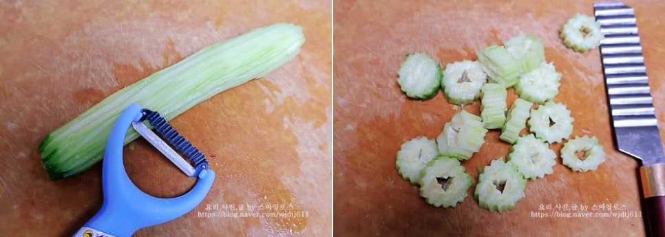 웨이브 칼로 0.5~0.7cm 두께로 썬다