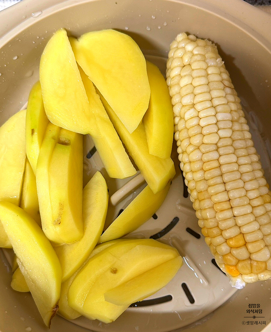 전자레인지에 1차로 5분 정도 익혀주세요.