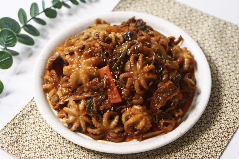 쭈꾸미와 우삼겹의 조합은 정말 실패할 수가 없는 메뉴잖아요. 매콤한 양념에 쭈꾸미의 쫄깃함이 더해지고, 그 사이로 우삼겹의 고소한 기름이 쏙 스며들면 그 향만으로도 밥 한 공기 뚝딱하게 되는 마법의 레시피죠?! 오늘은 맛있게 매콤하면서도 고소하고, 재료 자체에서도 물이 많이 나오지 않아 깔끔하게 완성되는 우삼겹 쭈꾸미볶음 레시피 소개해 드릴게요 '◡'