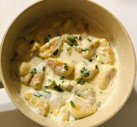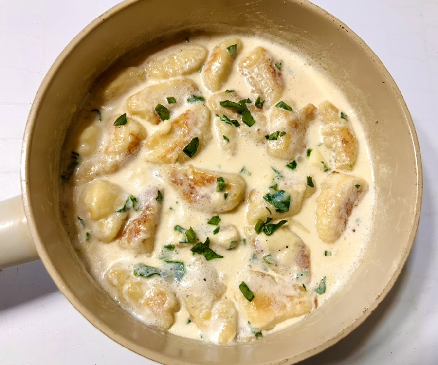 고소한 크림 소스와 부드럽고 쫀득한 뇨끼와 치즈의 풍미가 잘 어우러져 있는 감자 뇨끼가 완성되었어요.