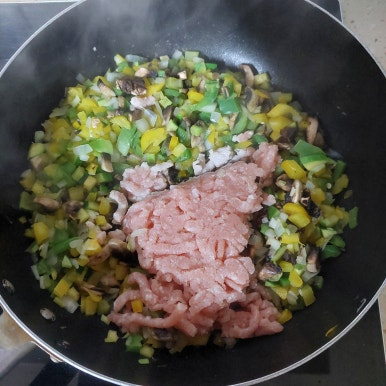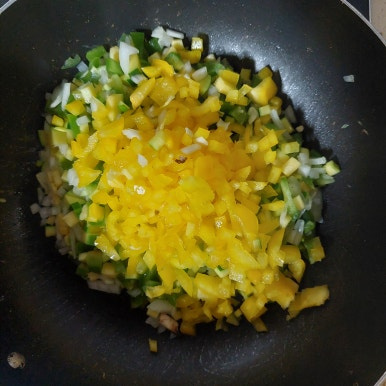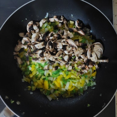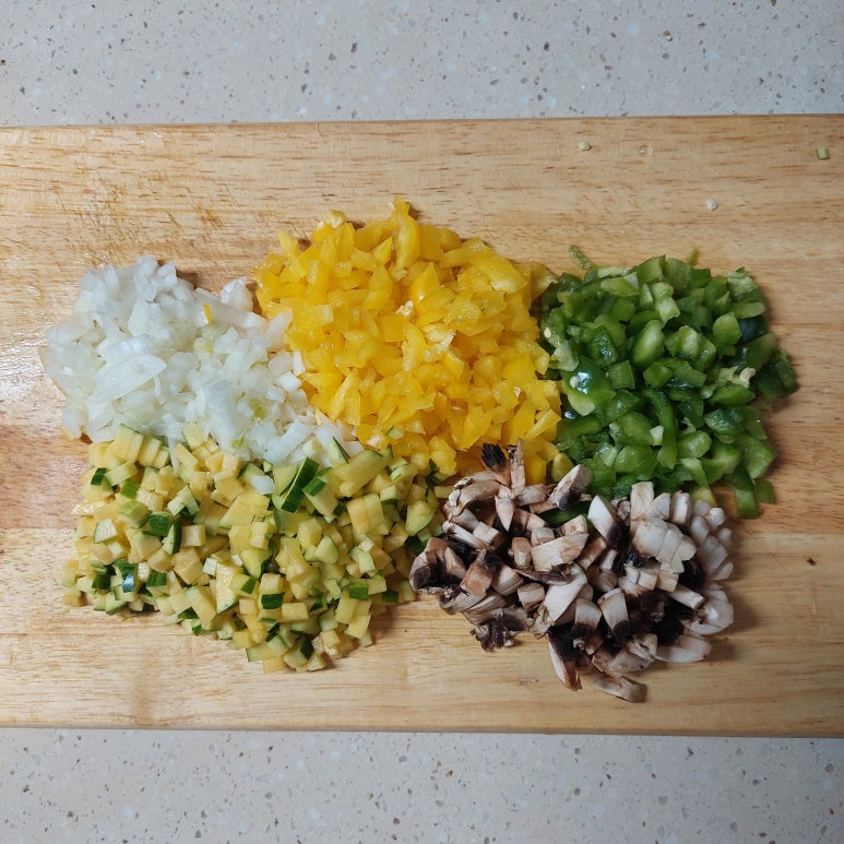 양파 1/2개, 파프리카 1개, 피망 1개, 애호박 1/2개, 양송이버섯 2개