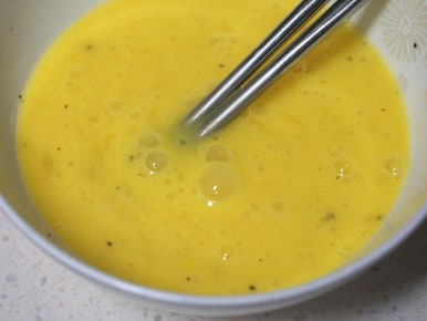 계란 3개, 소금 3꼬집, 후추 조금 뿌려 곱게 풀어주세요.