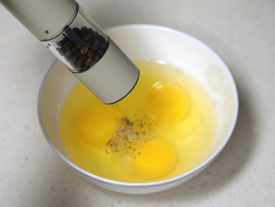 계란 3개 , 소금 3꼬집 , 후추 조금