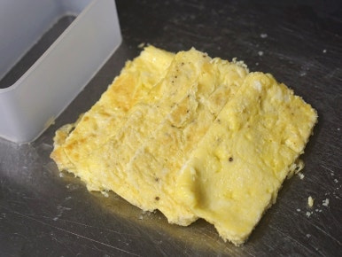 한 김 식힌 지단은 무스비 틀을 사용해 크기에 맞춰 잘라주세요.