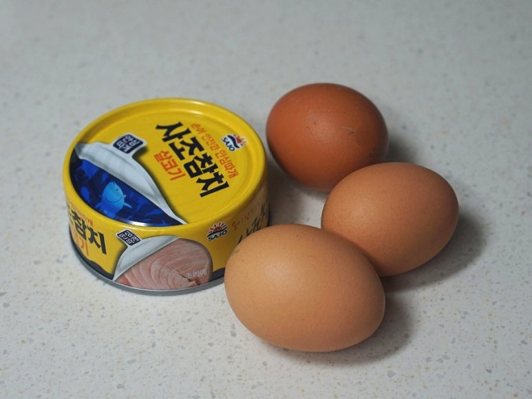 참치마요 무스비의 기본 재료, 캔참치와 계란 준비합니다.