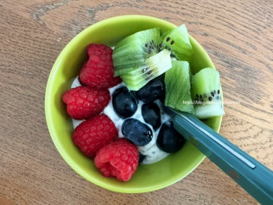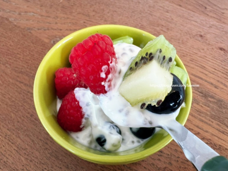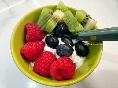 라즈베리 몇알 블루베리 몇알 키위 1/2개