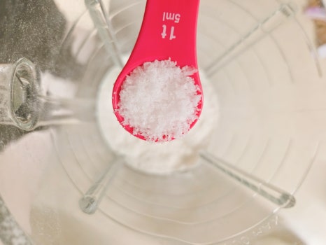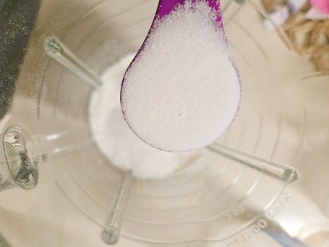 믹서기에, 쌀가루, 소금, 설탕 넣고 갈아주실껀데요