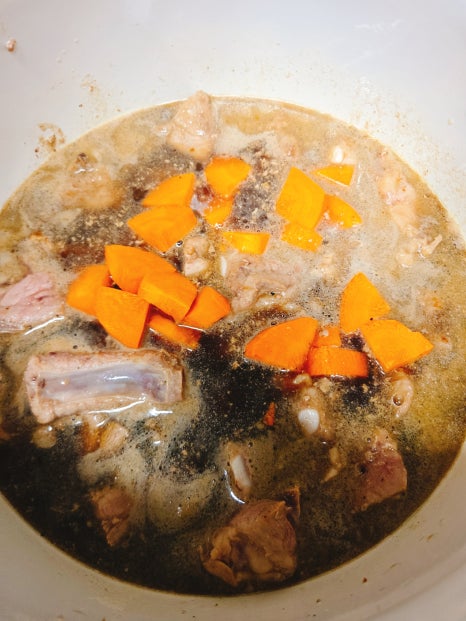 씻은 갈비와 당근,물,양념장 넣고 끓여주세요
