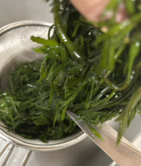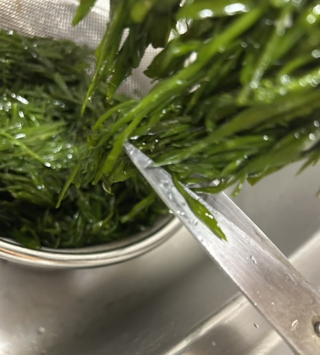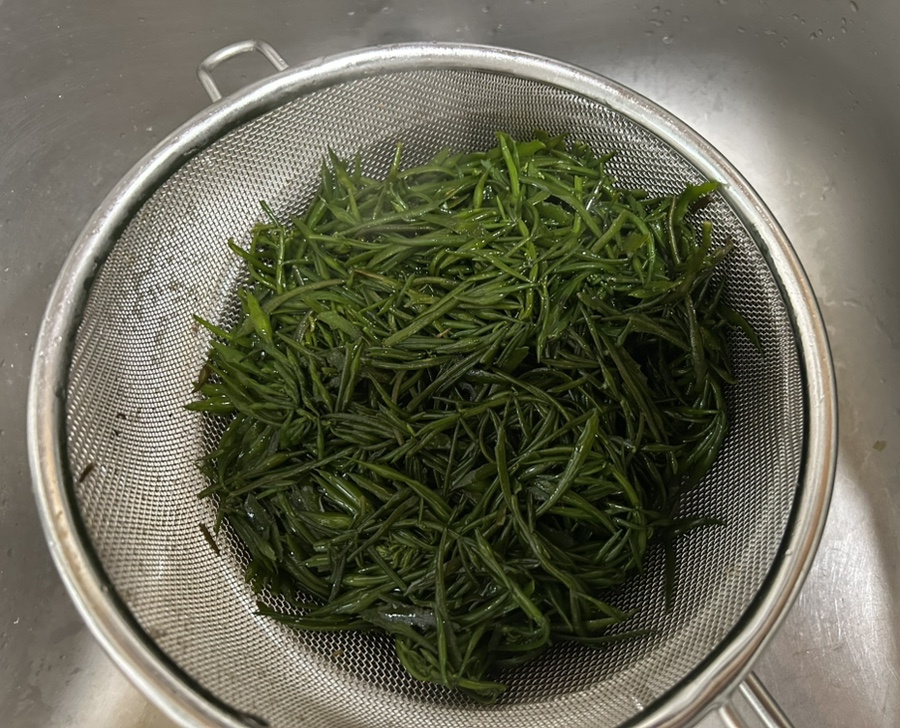 톳의 매력은 침엽수처럼 뽀족하지만 톡톡 터지는 듯한 식감이 매력인데 잎의 속이 꽉차오르는 지금이 톳이 맛있을 때죠.