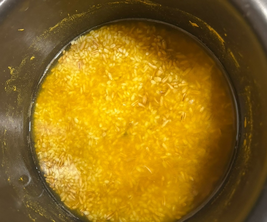 강황도 1스푼 넣어서 색감이 노란 밥이 되었어요.