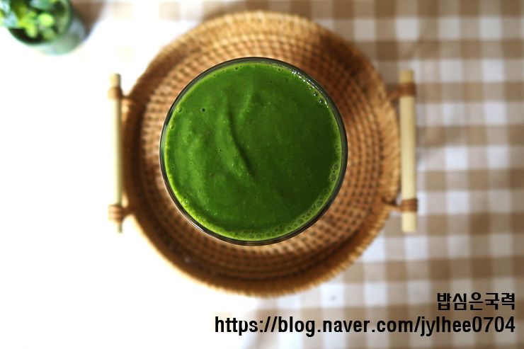 안녕하세요? 밥심은 국력입니다. 지치고 무기력한 아침, 내 몸의 균형을 잡아줄 특별한 레시피를 소개합니다. TV 프로그램 '좋은 아침'에서 화제가 된 호르몬 주스인데요. 신선한 케일과 사과, 고소한 아몬드와 두유가 만나 맛은 물론, 호르몬 생성과 대사를 돕는 영양소까지 꽉 잡은 한 잔 입니다. 정성껏 세척하고 갈아 만든 이 주스 한 잔으로 하루의 에너지를 충전해 보세요.