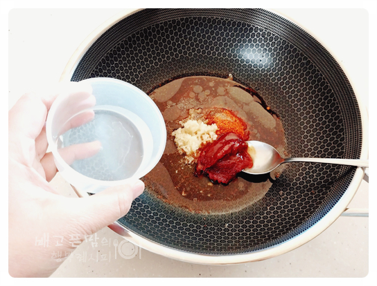 다진 마늘 1 큰 술, 고추장 1 큰 술, 고춧가루 1 큰 술,