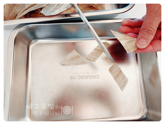 자른 건가자미는 체에 담아