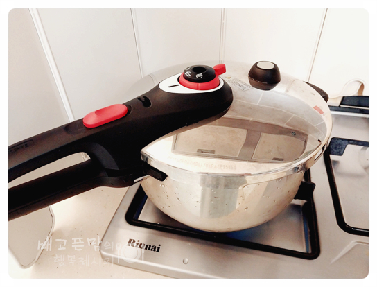 그리고 압력솥 뚜껑을 닫고 가스불에 올려