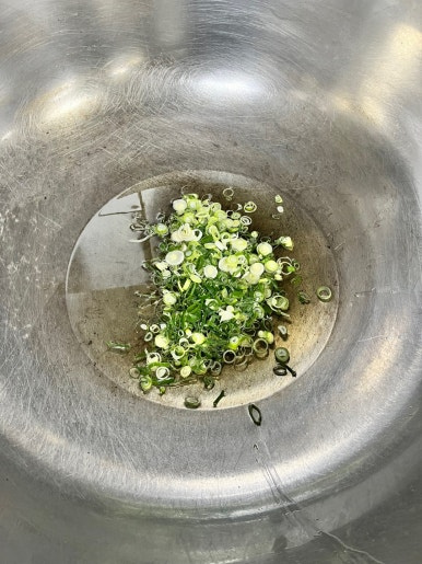팬에 기름을 두르고 송송 썬 대파를 넣어 향긋한 파기름을 먼저 내줍니다.