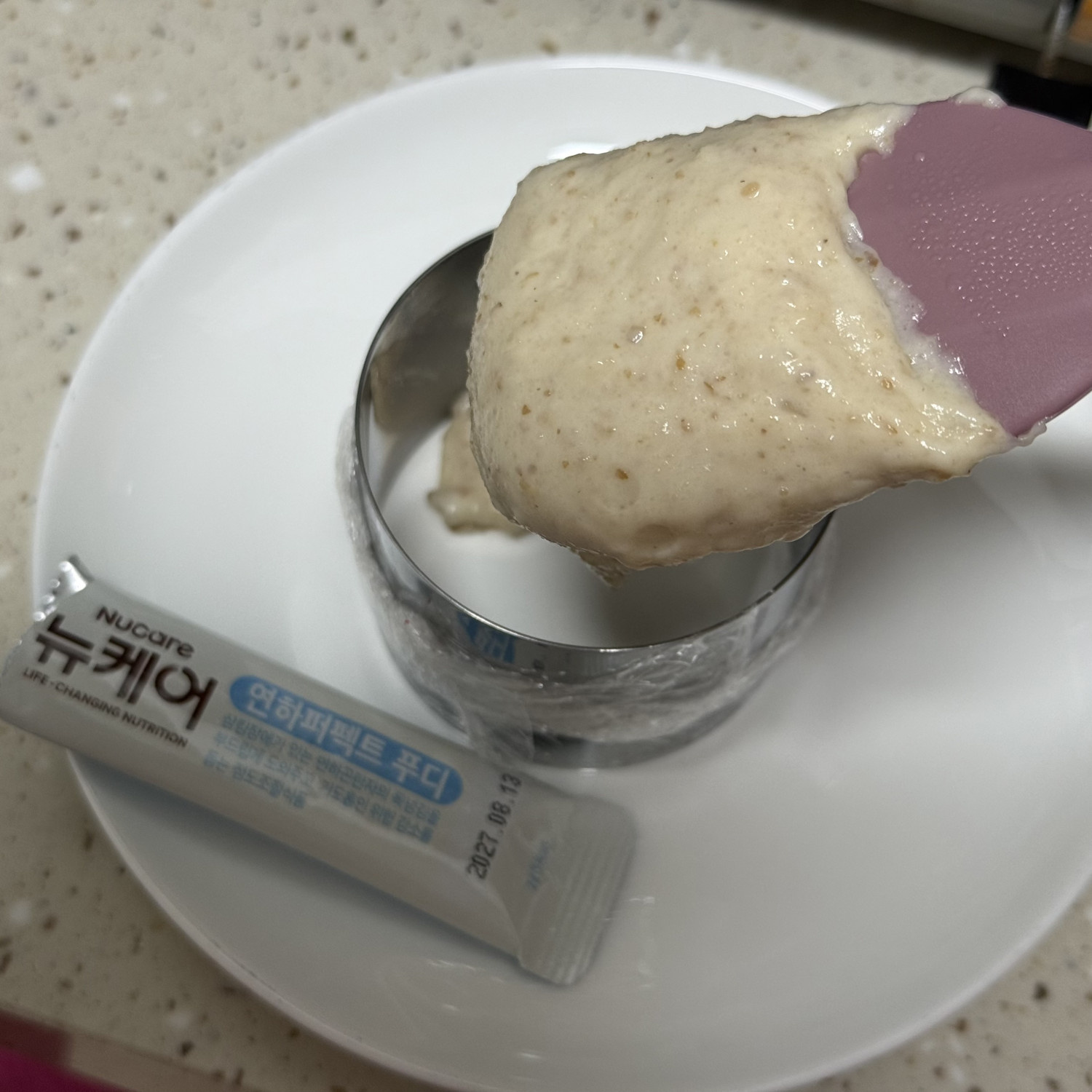 우유100ml, 다이제 쿠키1개, 푸디1g