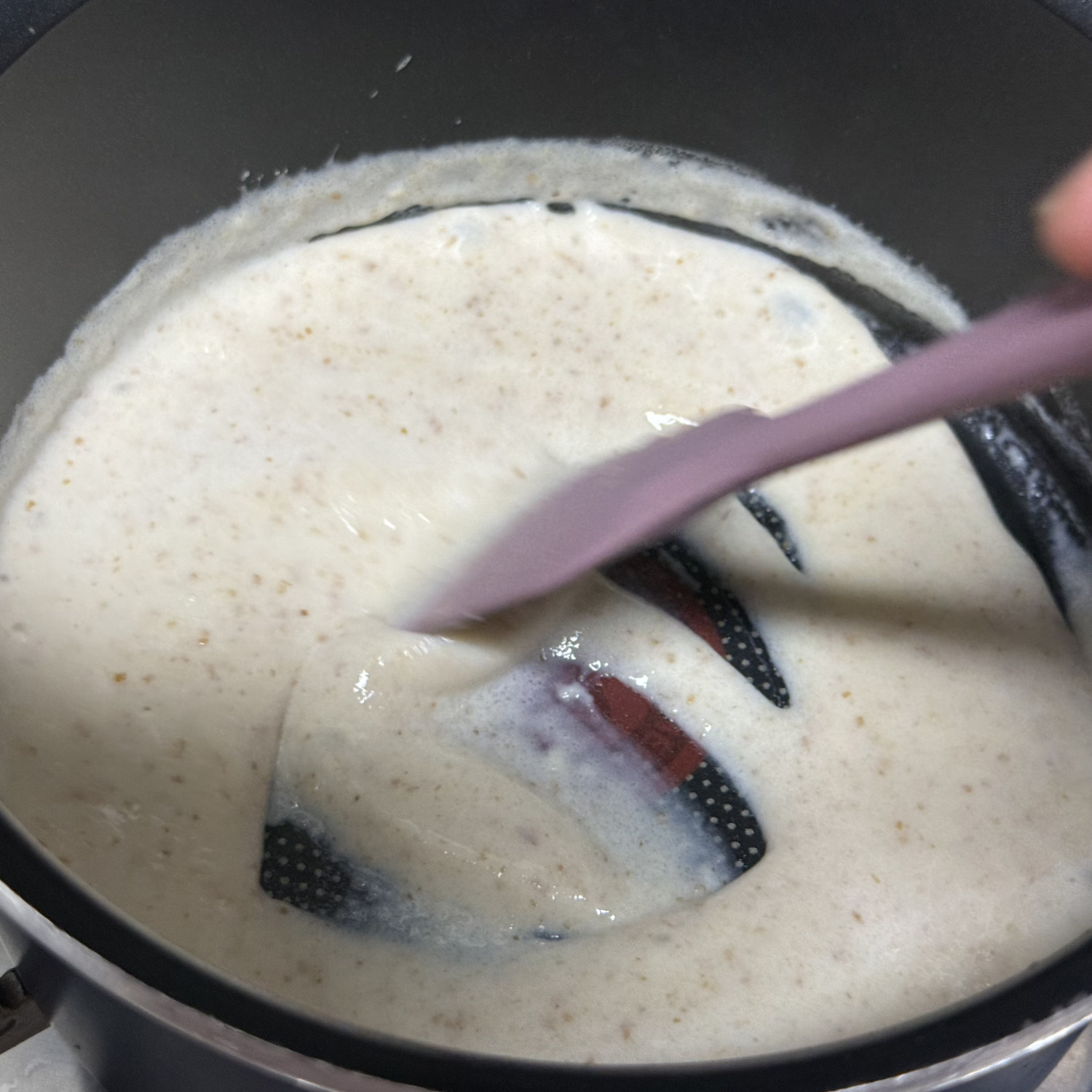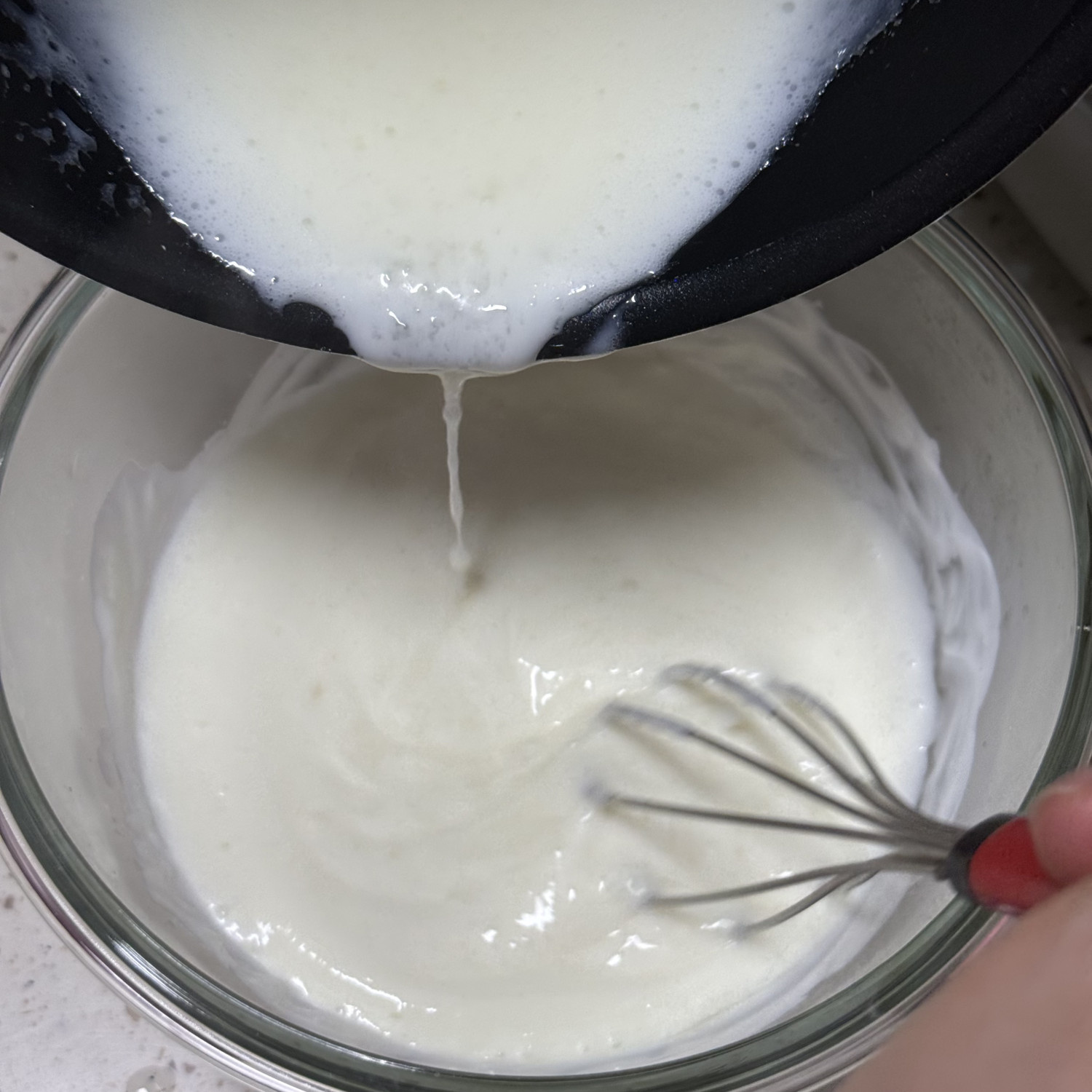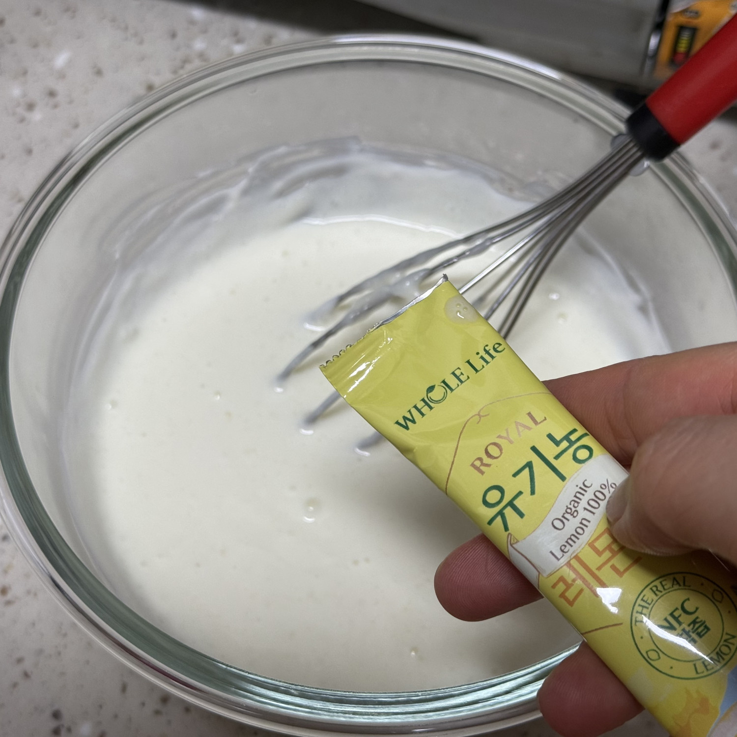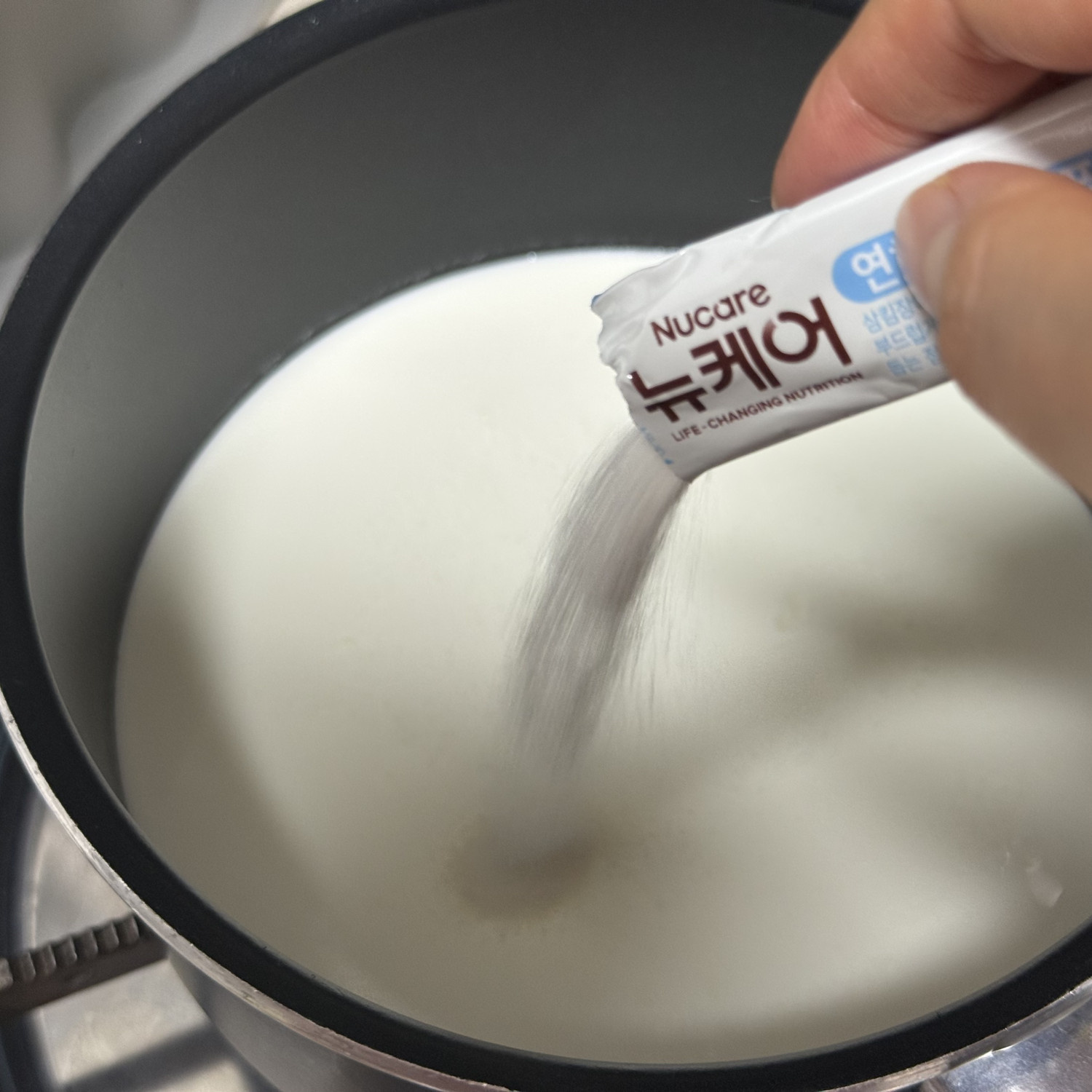 온도가 서서히 오르게 하기 위해서 조금씩 넣어가면서 저어줘야 해요!!