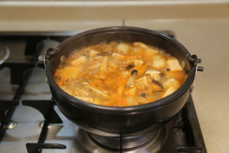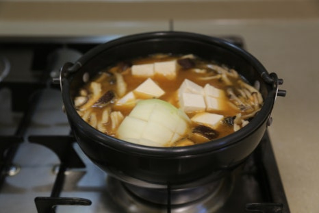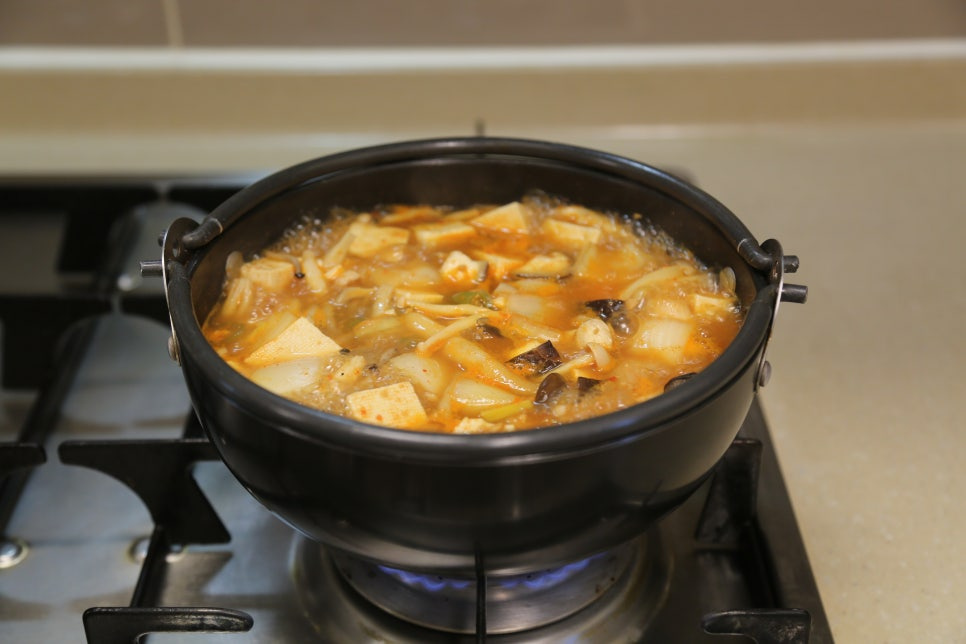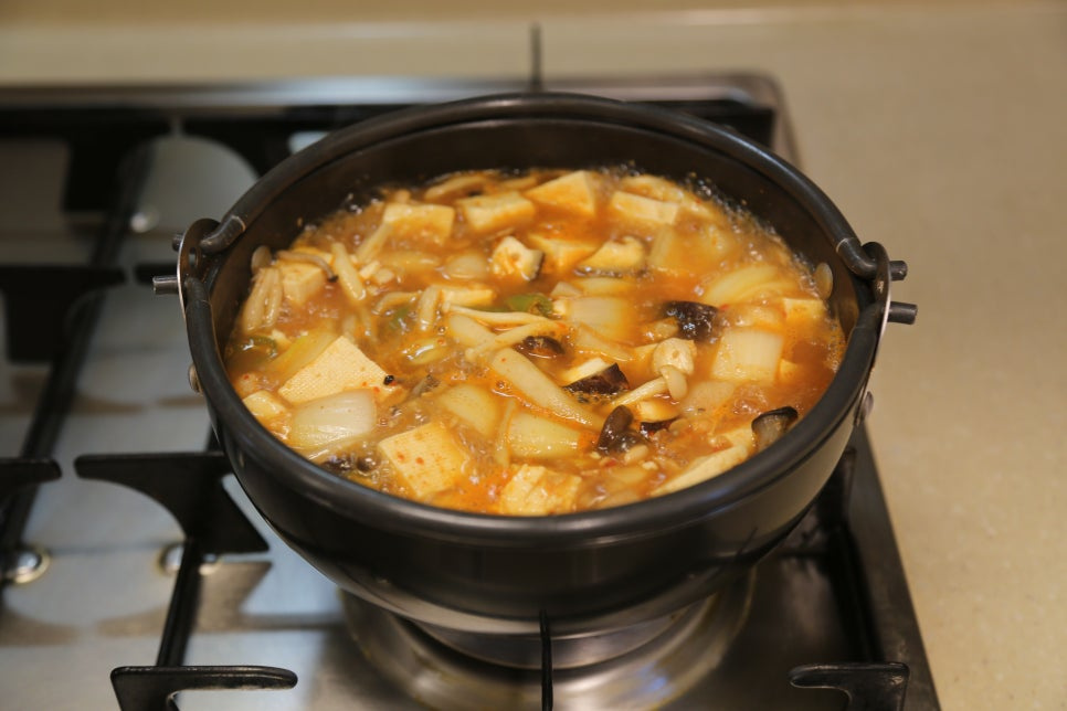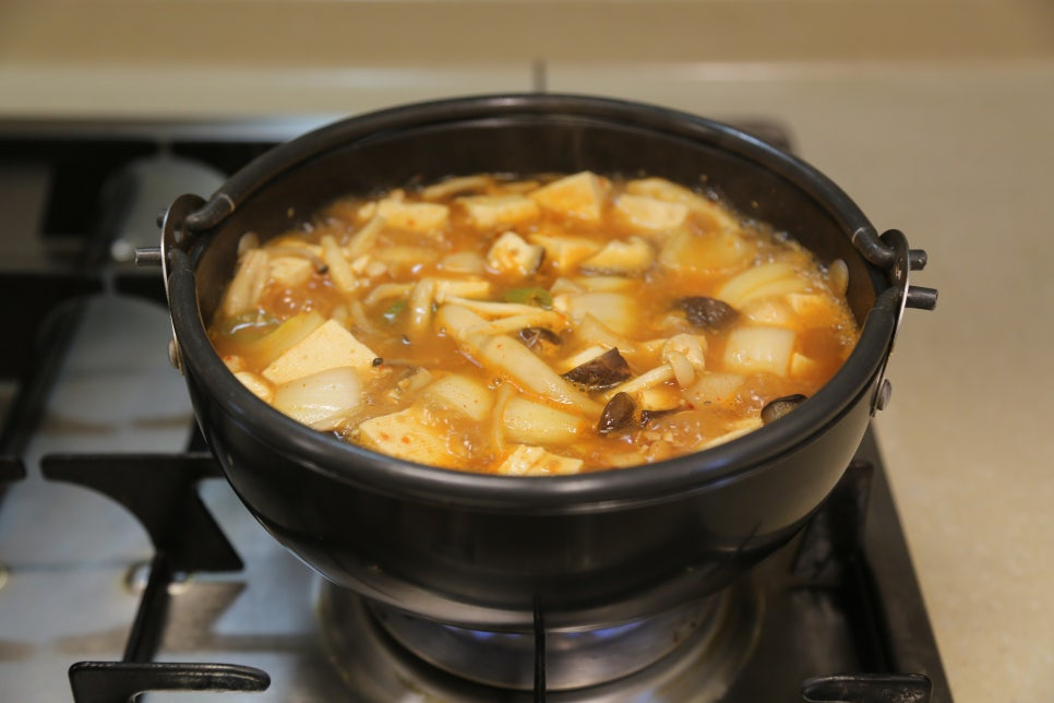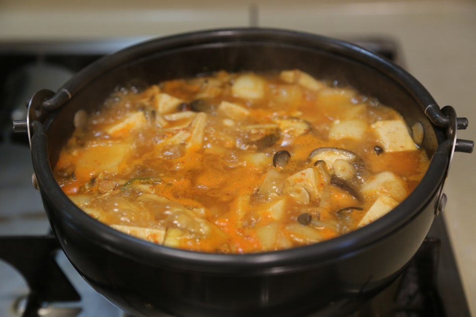 두부 한 모, 양파 1/2개, 표고버섯 1개, 느타리버섯 1줌, 만가닥버섯 2줌, 청양고추 1개
