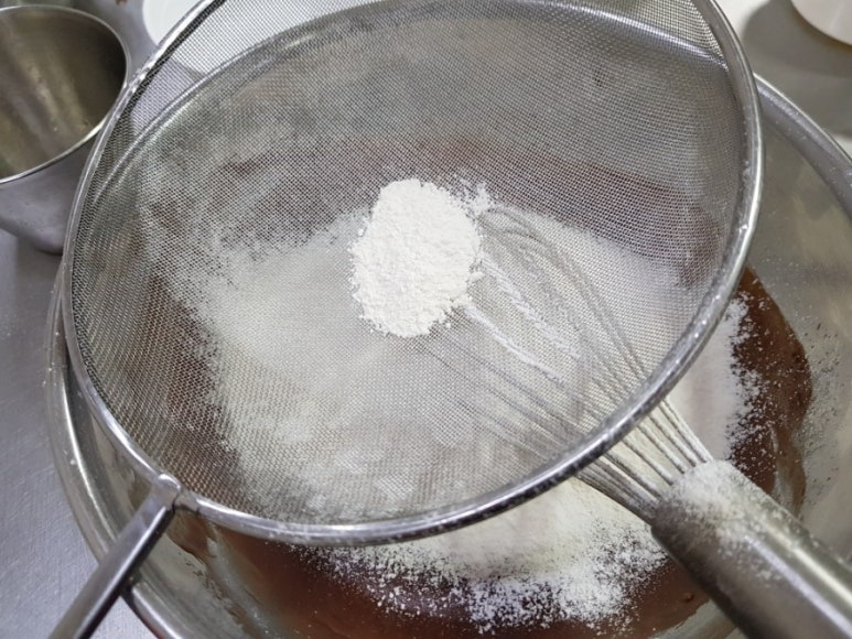 다시 박력분을 체치면 공기층이 생겨서 좋아요.