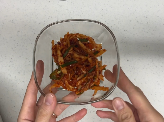 식초 1.5큰술, 설탕 1큰술, 매실청 1큰술, 고춧가루 2큰술, 다시다를 조금