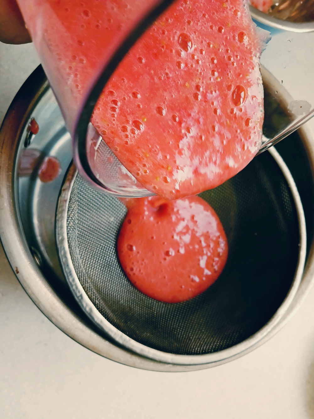 갈아서 체에 한번 걸러줍니다.