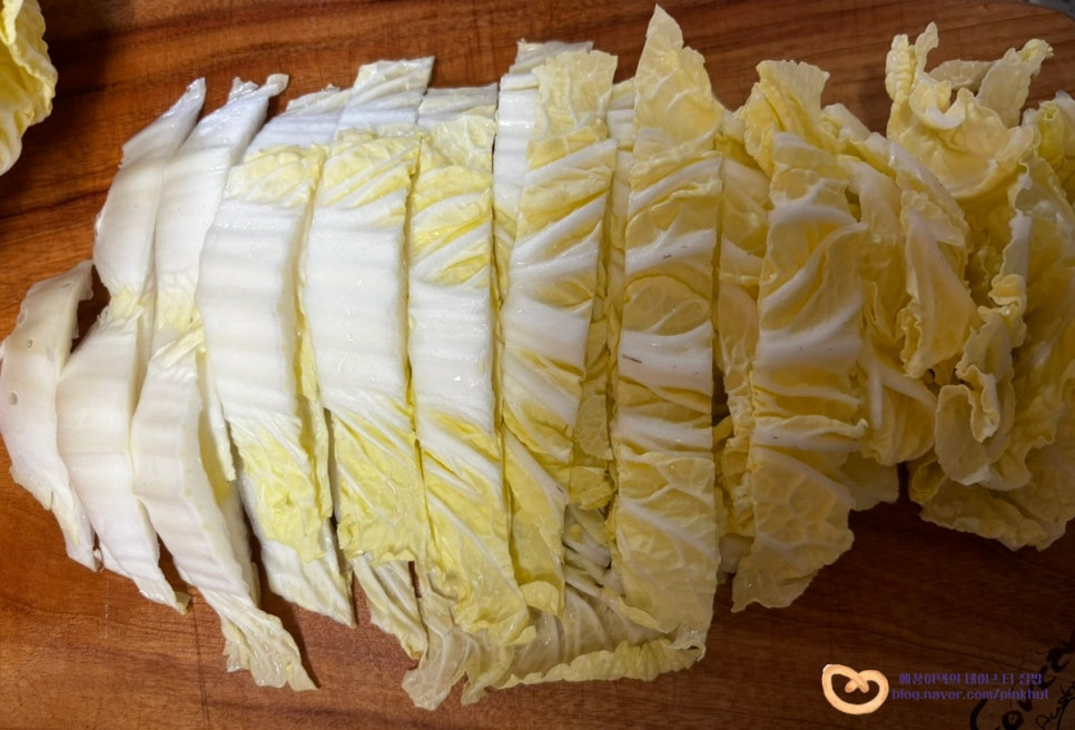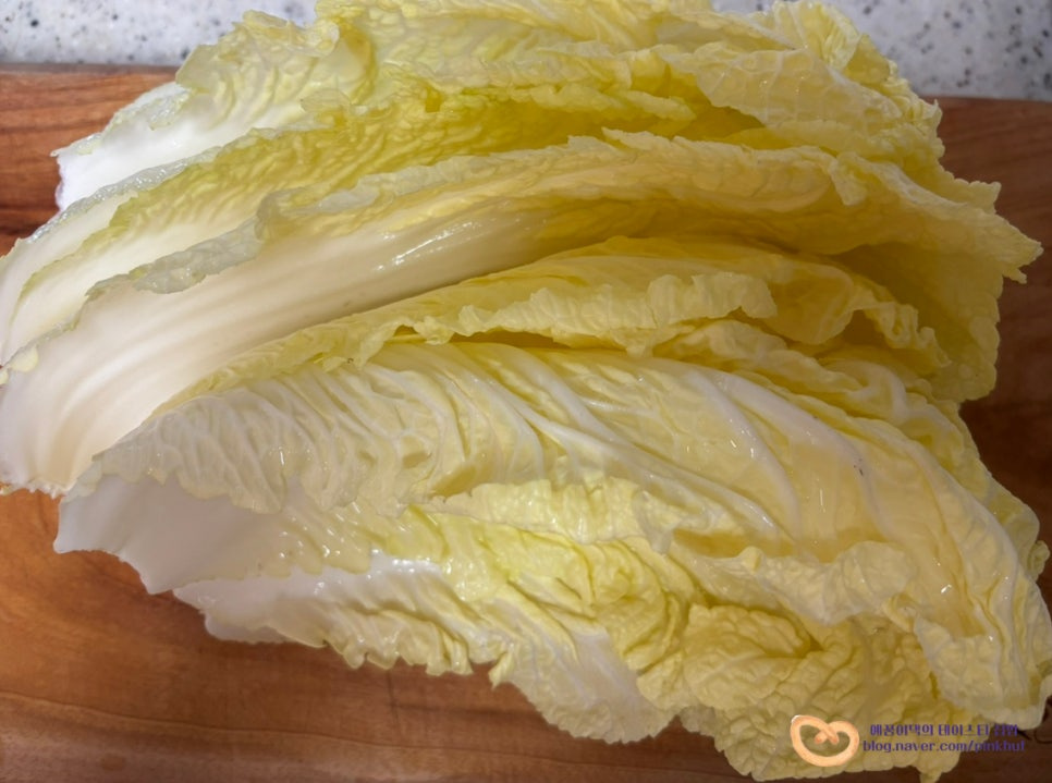 알배기 배추도 좋고요, 요즘 조금씩 눈에 띄는 중인 봄동으로 만드셔도 맛있어요. 알배추와 봄동 모두 씹을 때 아삭아삭 터지는 수분감과 식감이 너무 좋아요