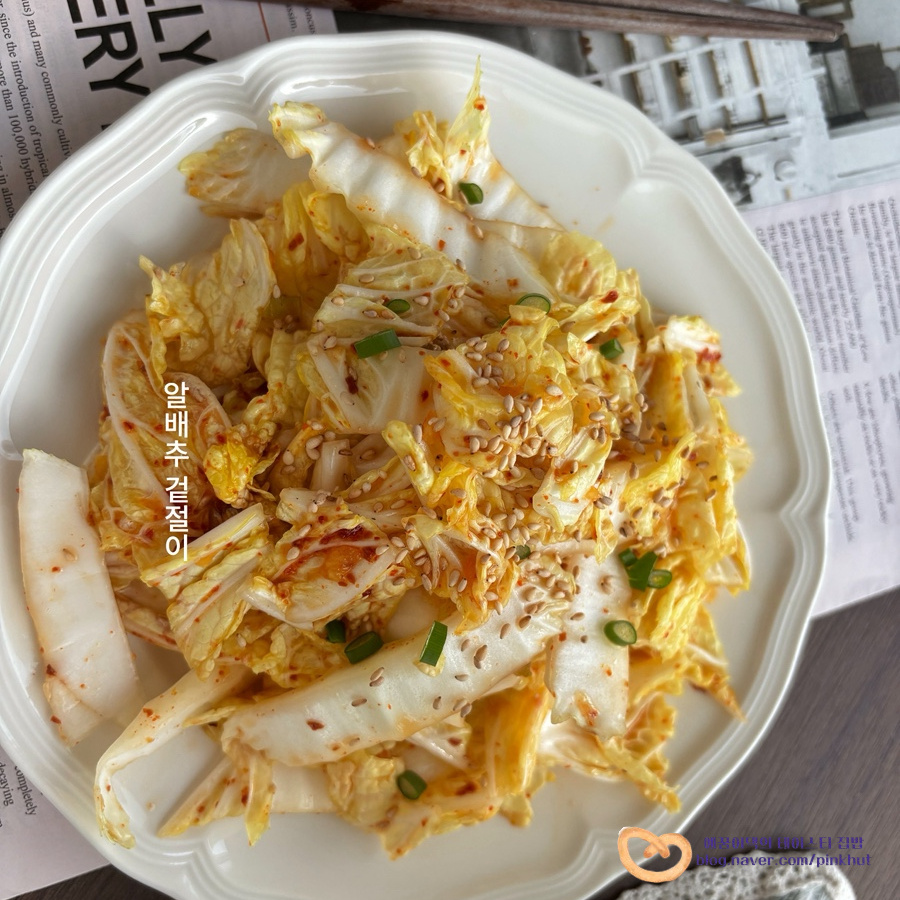 절여서 묵직한 김장김치도 맛있지만, 신선한 배추요리가 당길 때가 있잖아요. 알배추는 일반 배추보다 본연의 단맛이 좋고 줄기도 연하기 때문에 겉절이김치로 해 먹기에 딱 좋은 재료랍니다