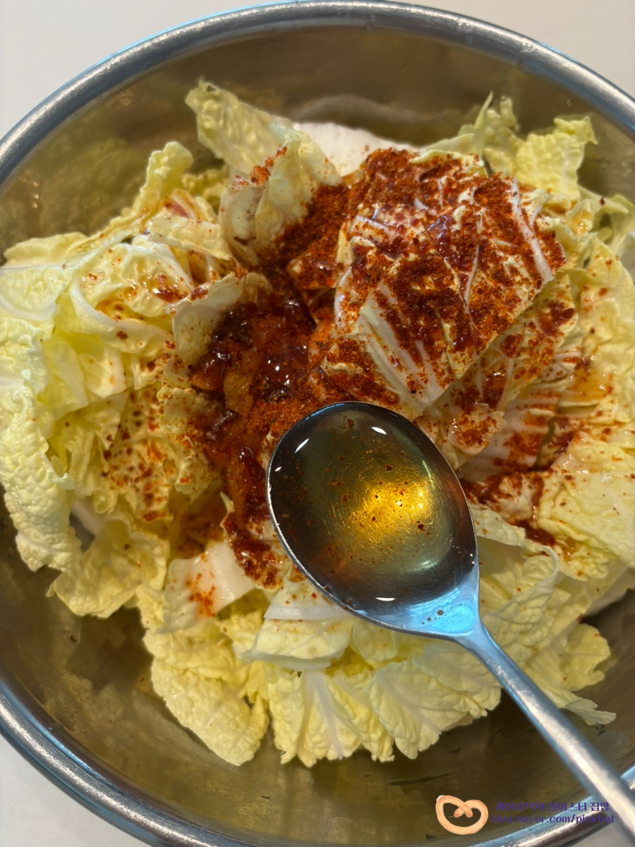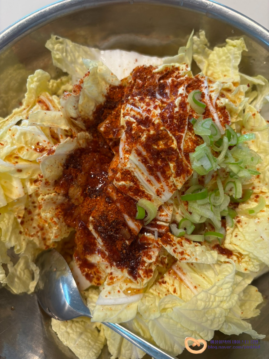 알배기배추 겉절이에서 제일 중요한 건 양념이죠?ㅎㅎㅎ
