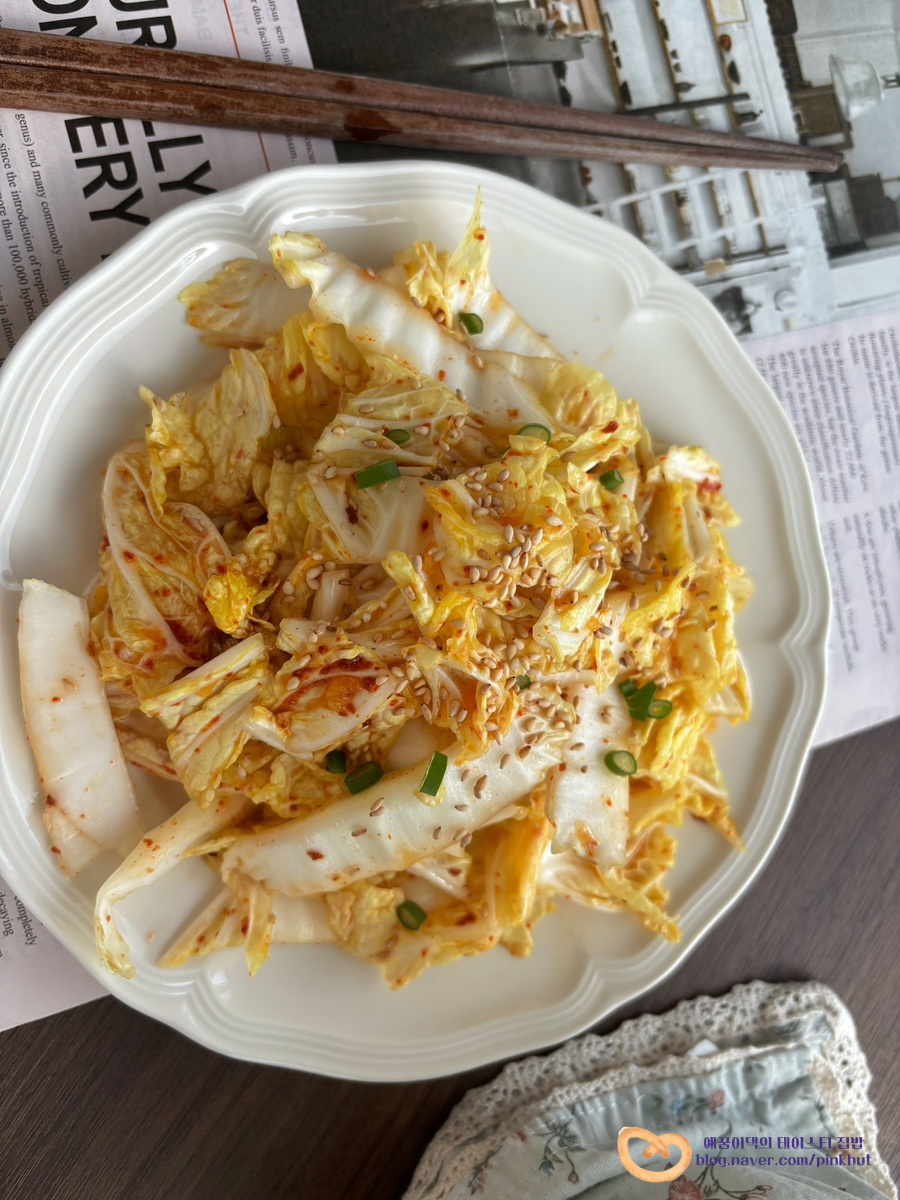 오늘 알려드릴 예꿈이댁표 알배기배추는 양념이 자극적이지 않아서 아이들도 잘 먹을 수 있고요, 저희 남편도 좋아하는 겉절이 종류예요.