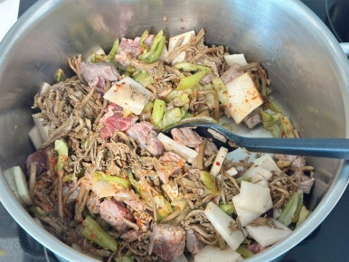 아침저녁 기온차가 꽤 큰 환절기네요. 이런 날씨에는 뜨끈하게 국물요리로 든든하게 기운을 북돋아 주는 게 좋죠! 소고기를 듬뿍 넣고 얼큰하게 경상도식으로 끓인 소고기뭇국이 생각나서 한 냄비 푸짐하게 끓여보았답니다. 고사리와 토란 줄기까지 건더기로 푸짐하게 넣고 진하게 끓여 내면 밥 한 공기 뚝딱 먹게 되는 맛이에요! 얼큰하게 속을 든든하게 채워주는 경상도식 소고기뭇국 끓이는 법을 남겨 보도록 할게요 :)