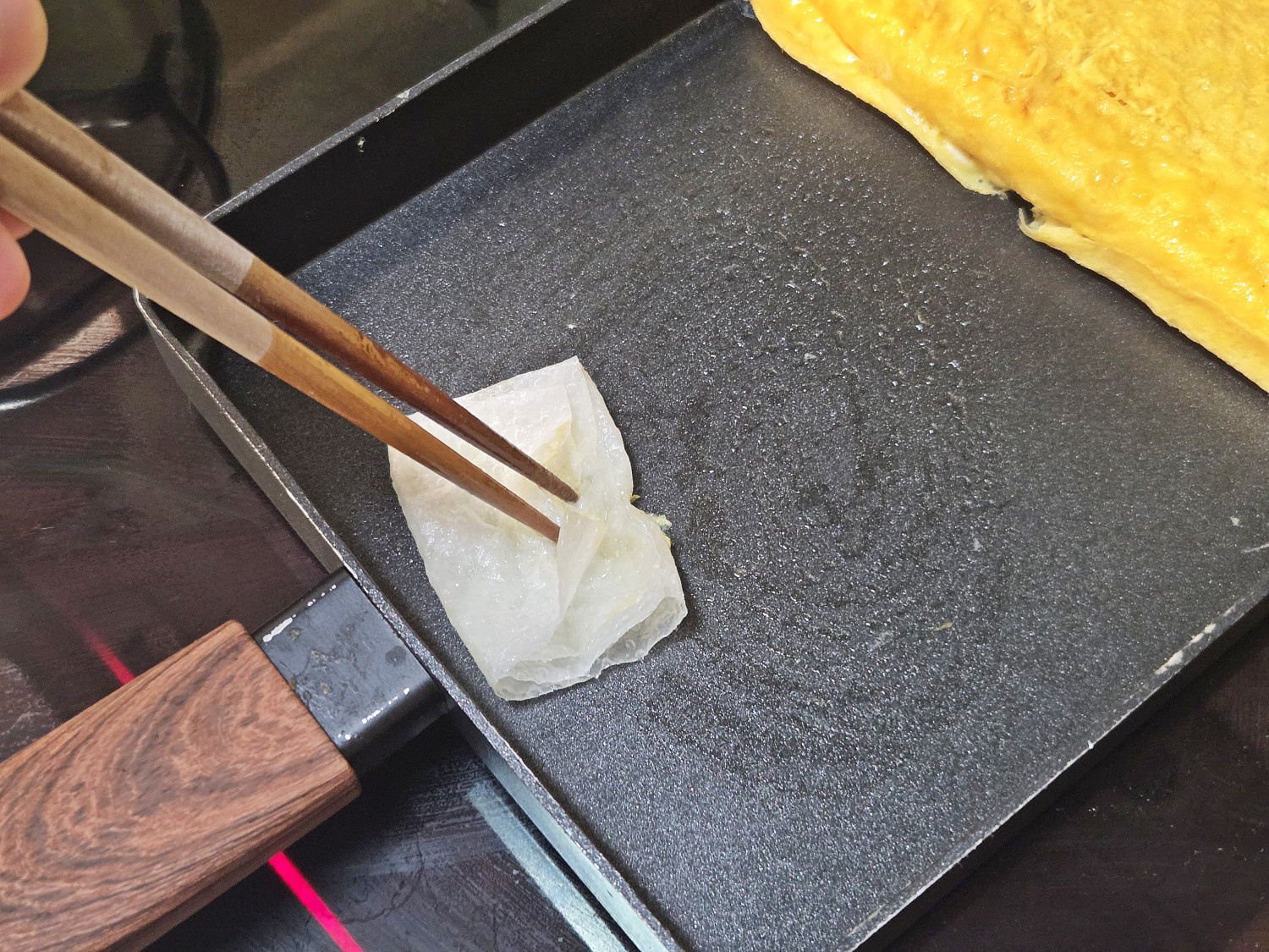 오늘은 쯔유와 국간장, 소금, 설탕을 넣어 부드럽고 촉촉한 일본식 계란말이를 만들어 봤어요.