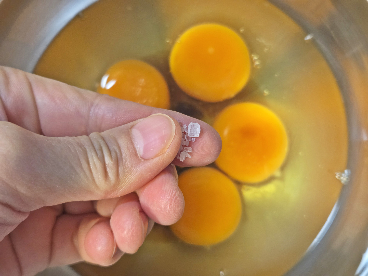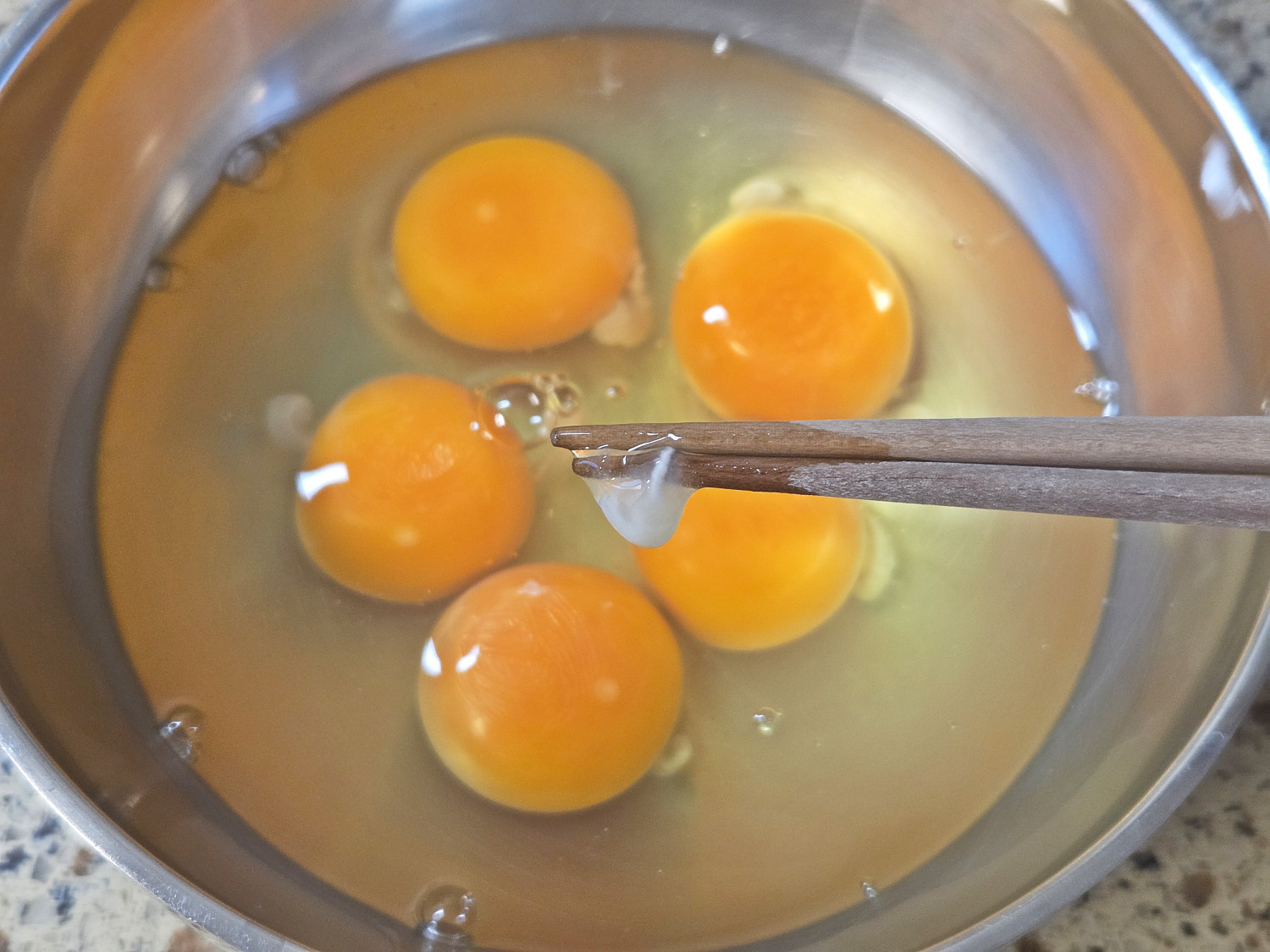 먼저 볼에 달걀을 깨서 담고, 알끈을 제거해 줍니다.