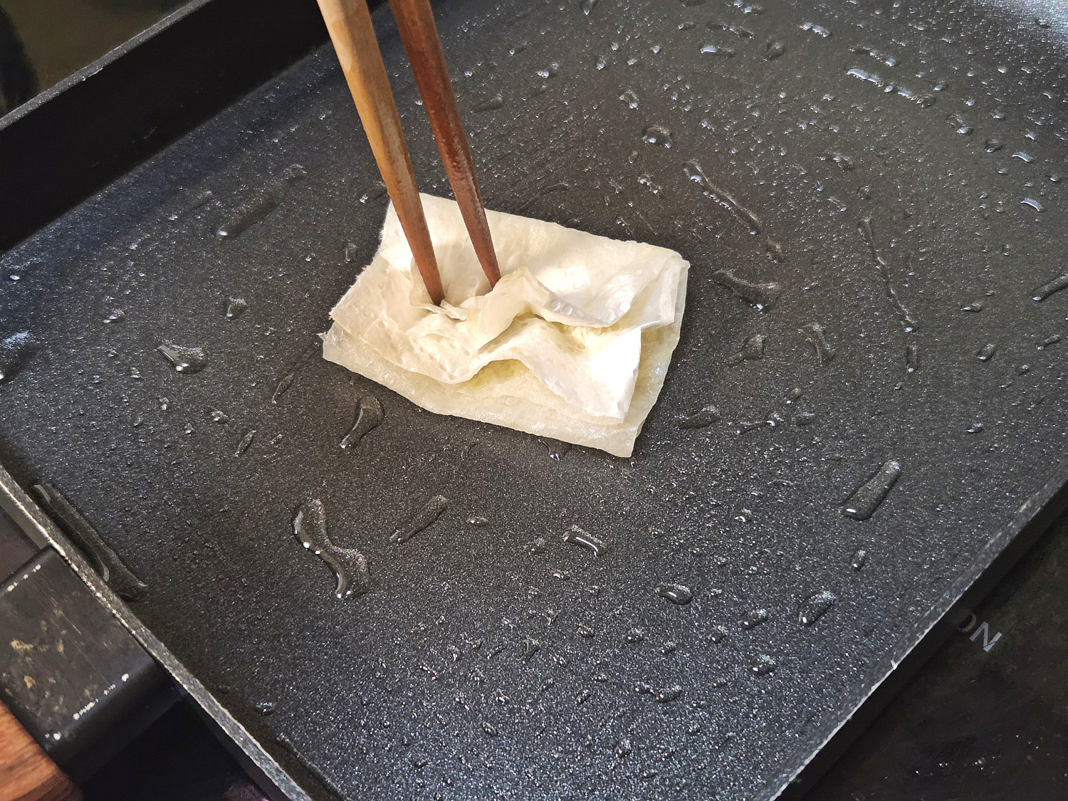 중불로 달군 팬에 식용유를 두른 뒤 키친타월로 팬 구석구석 기름 코팅을 해주고요.