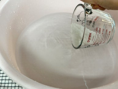 물 2L에 천일염 200ml를 잘 녹여준 다음