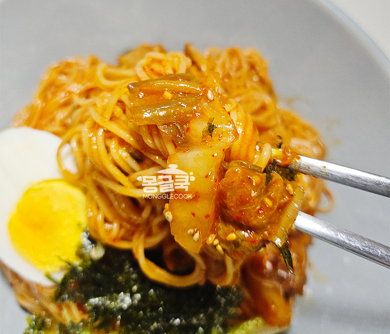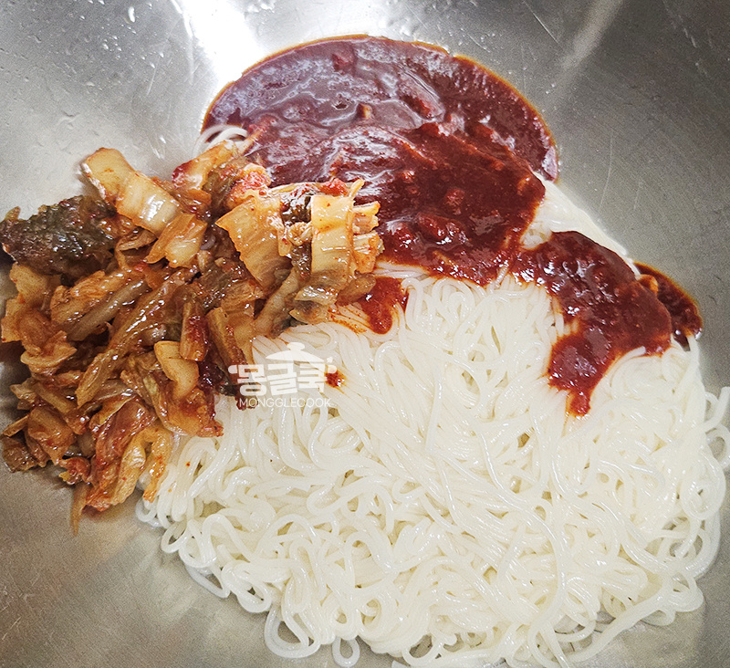 김치비빔국수에 들어갈 김치는 신김치를 사용해 주세요.