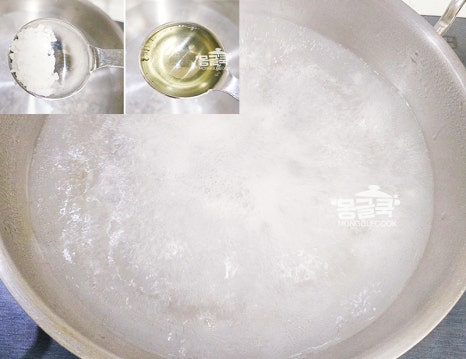 식용유 한 큰술은 연근 전분을 부드럽게 감싸 식감이 훨씬 쫀득하게 만들어주는 핵심 재료예요.