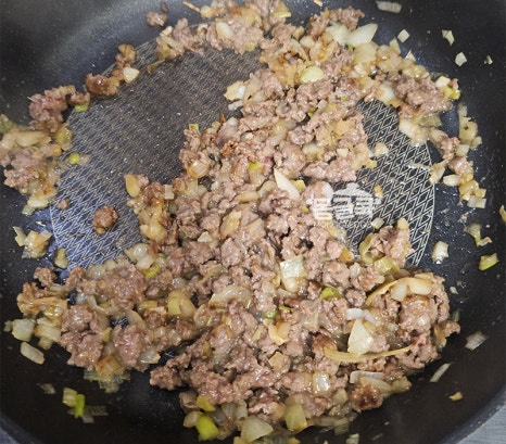 주걱을 세워가며 고기가 뭉치지 않게 풀어주세요.